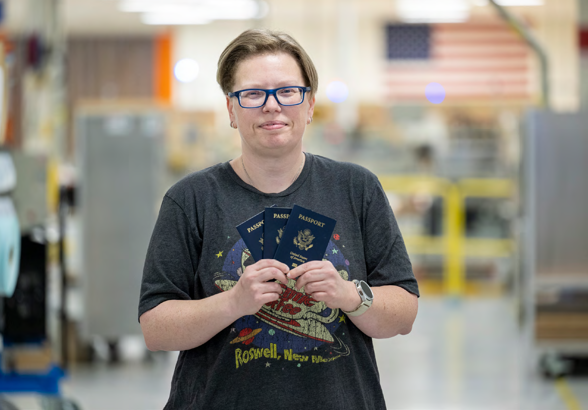 “When people open up their passport, the first page is the one I have personally helped make,” says Dunn. “Having the opportunity to create secure documents for American citizens and knowing citizens travel using the documents I helped to create fulfills a deep satisfaction in me.”